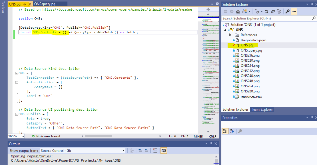 I’ve come from a background of Qlikview development and I’m now learning Power BI.  With all the information around Covid-19 being released I wanted to do some analysis myself.  The Office of National Statistics (ONS) produce lots of extracts and it’s perfectly possible to download excel files off their website. However, that’s not as much fun or a challenge as automating the process. This blog post walks you through the process of building the Power BI ONS custom data connector. With Power BI it’s possible to build custom data connectors with the SDK. With the help of various other blog posts (kasperonbi)  and the Microsoft examples (TripPin), I’ve been able to get it working.  It has also been a good learning exercise in the functional language M. The Office of National Statistics have a Beta API (https://developer.beta.ons.gov.uk/) which is open and unrestricted (no oAuth2 etc).  As it’s in Beta it should not be relied upon and as their site says may ‘occasionally be breaking’. Before you get too excited, I should warn you the data available here appears to be quite limited, only data from the current year is present.  However, you can find previous years’ data in excel files on their site. If you just want to use it and are not interested in the detail, follow these steps: